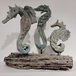 Figurative ceramic sculptures and oil paintings, uniquely imaginative, sometime functional.